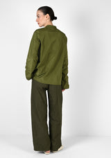 Puristisch eitlos. Japanisch inspiriertes Design mit kleinem Stehkragen und offenen Ärmeln – klare Linien, reduzierte Form. In Szene gesetzt als leichte Bluse oder lässige Jacke. Minimalistisch, wandelbar, essentiell.
