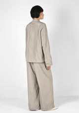 Puristisch eitlos. Japanisch inspiriertes Design mit kleinem Stehkragen und offenen Ärmeln – klare Linien, reduzierte Form. In Szene gesetzt als leichte Bluse oder lässige Jacke. Minimalistisch, wandelbar, essentiell.