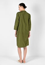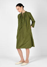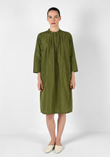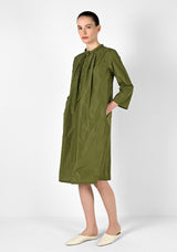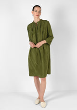 Summer-light and feminine! The clean stand collar meets hand-laid, irregular pleats that dance flowing towards the hem. Playful, girlish, full of lightness – pure summer joy.