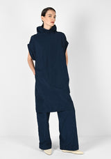 Sportiv trifft Statement! Im Tunika-Stil und mit überschnittenen Schultern – der hohe Kragen steht im Fokus und macht Styling zum Spiel. Flach angelegt für zurückhaltende Eleganz, entspannt gekrempelt oder dramatisch aufgestellt für maximalen Auftritt. Vielseitig, selbstbewusst, immer anders!