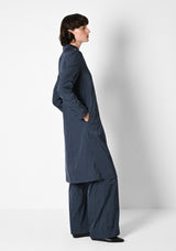 Kaftan trifft auf Shirt-Dress! Gerade geschnitten und streng elegant - geschlossen minimalistisch, offen lässig. Ein schmaler Steg mit Knopf entscheidet über den Look.