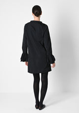 Sixties Soul im Mini Dress! Puristisch in der Form und mit tief angesetztem Rockteil, setzten Rüschendetails an den Ärmeln einen femininen Gegensatz. Kurz, klar, mit Attitude.