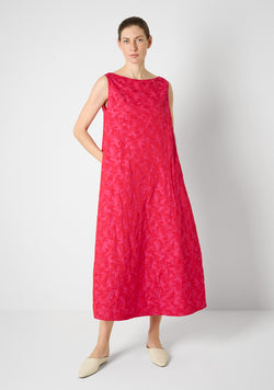 Das schlichte, lange und leicht ausgestellte Plain Dress lässt unseren Taft schwingend zur Geltung kommen. Sommerlich ärmellos und mit U-Bootausschnitt.